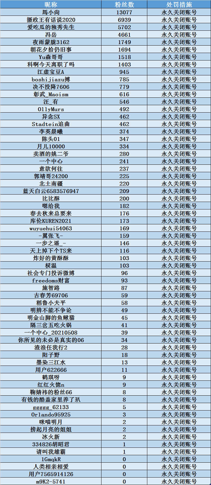 5月22日,袁隆平院士因病逝世,社會各界沉痛哀悼。微博發現有個別賬號藉此機會發布侮辱攻擊袁老的有害內容,造成惡劣的影響。站方在之前處理的基礎上,根據網友投訴又對發布此類信息的@馬小尙@攝政王有話說2020@愛吃瓜的獨秀先生 等64個賬號依據有關法律法規,做出永久關閉處罰。(賬號名單見配圖)