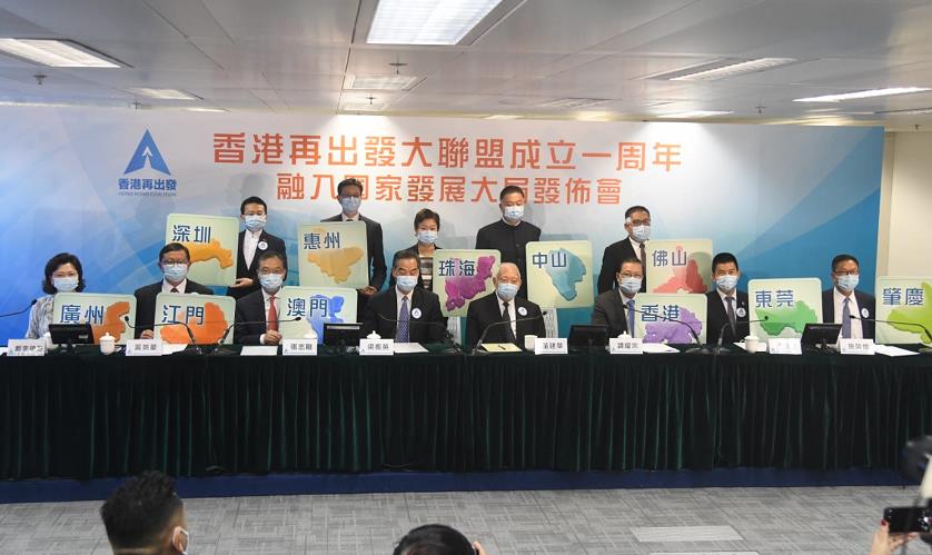 由全國政協副主席董建華及梁振英牽頭成立的香港再出發大聯盟(大聯盟)成立一周年,24日舉行發布會介紹大聯盟重點工作,推動香港與大灣區城市合作,落實對接粵港澳大灣區發展。大聯盟總召集人董建華表示,國家一步步向前走,逐漸強壯起來,香港終於可以重新出發,香港一年內有很大變化,好的時候正在到來;大聯盟總召集人梁振英指出,香港比起一年前有更好的條件再出發,相信「纏繞香港的結會一個個解開」。