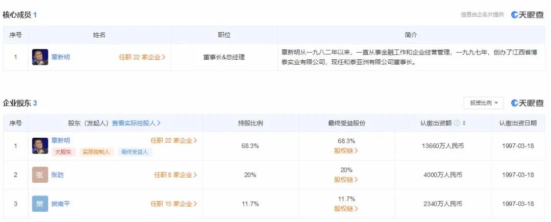 天眼查工商資料顯示,博泰集團成立於1997年3月,以房地產為核心業務,是涵蓋房地產、食品、商務酒店、都市娛樂、礦業、物業管理等多領域的企業集團,是江西最具影響力的房地產開發企業之一。