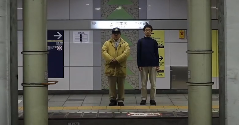 荒木浩(右)和阪原淳(左)重回當年事發地點東京六本木地鐵站拍攝。