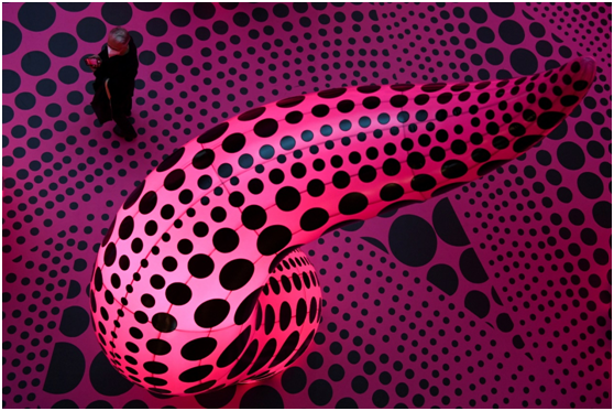 當地時間5月19日,在德國柏林,一名男子在參觀日本藝術家草間彌生在格羅皮烏斯博物館舉辦的展覽。