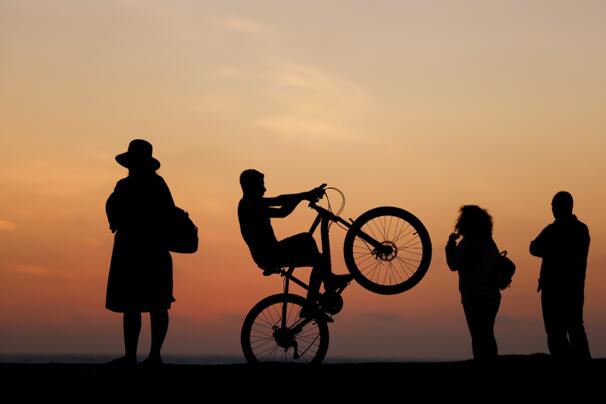 當地時間5月23日,在以色列阿什克倫,在以色列與哈馬斯停火的情況下,人們在日落時分的海灘上玩耍。