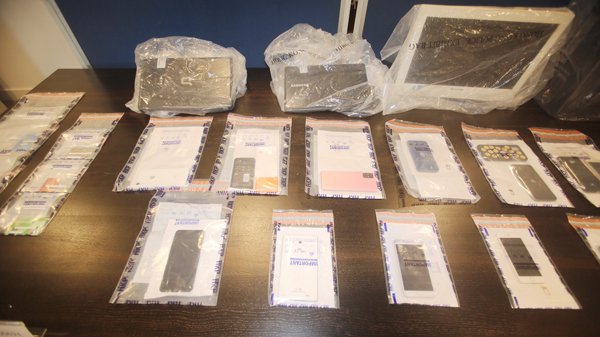 新界北總區重案組人員經深入調查和分析後,在本月10日至28日一連3星期展開連串拘捕行動,突擊搜查全港多個處所,拘捕34名行騙集團骨幹成員,並凍結80萬元銀行存款,行動仍然繼續,不排除再有人被捕。(記者區天海)