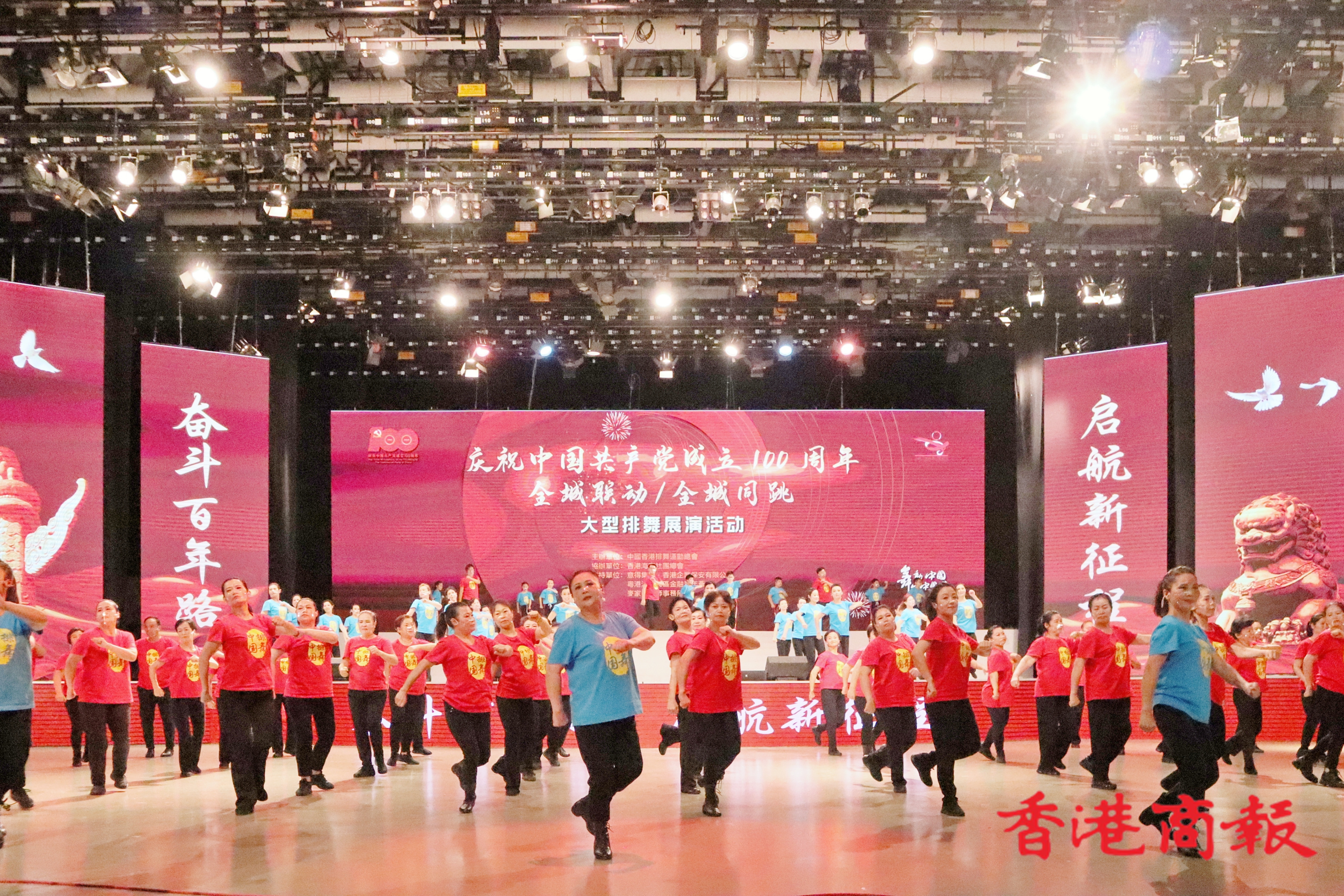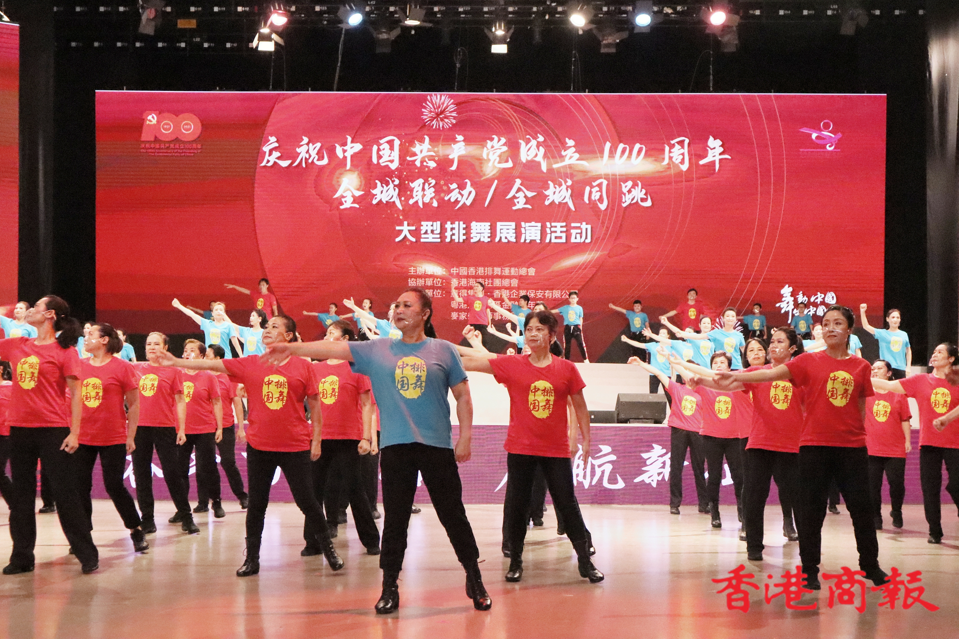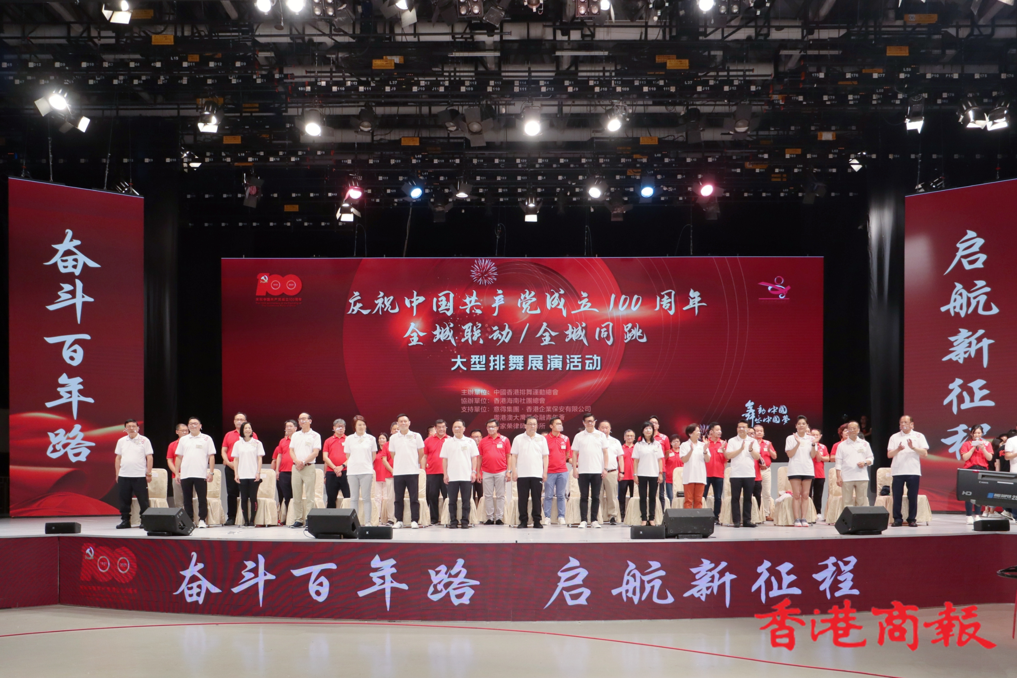 為慶祝中國共產党成立100周年,中國香港排舞運動總會今日主辦「慶祝中國共產党成立100周年全城聯動/全城同跳」大型排舞展演活動,多位嘉賓出席,包括民政事務局局長徐英偉、全國人大常委譚耀宗、民建聯主席李慧琼等。