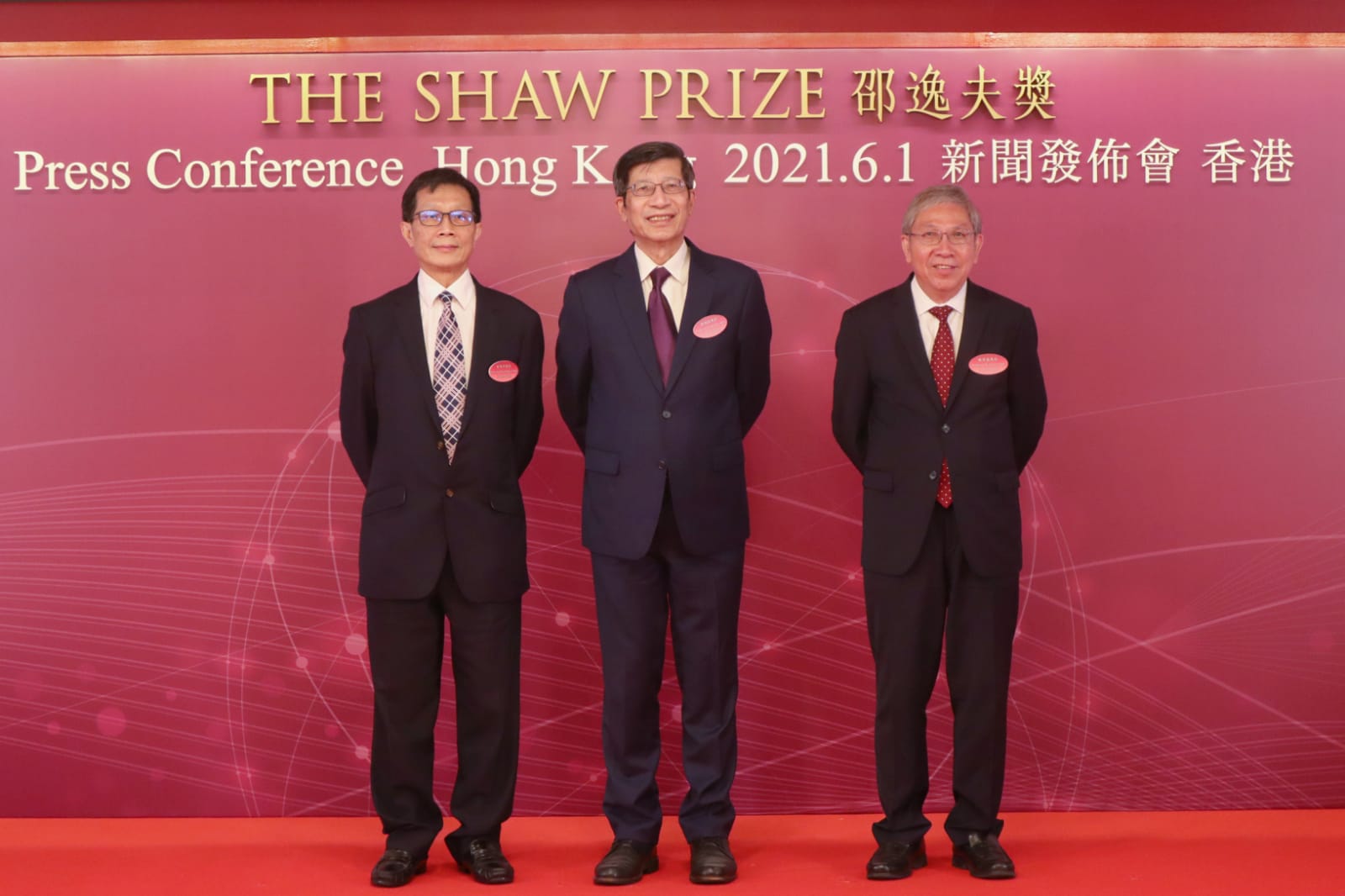 2021年度「邵逸夫獎」今日(1日)舉行新聞發布會,公布得獎者名單,三大獎項由5人獲得。