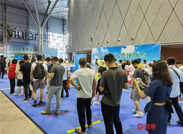 深圳灣體育中心內,市民正在有序登記接種深圳產疫苗。
