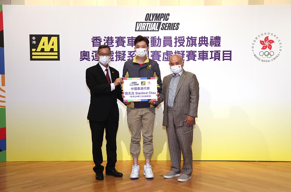 香港汽車會透露今日(3日)上午舉行了授旗儀式,並邀請了民政事務局體育專員楊德強、港協暨奧委會會長霍震霆、義務秘書長王敏超和汽車會會監余錦基出席,眾人在汽車會會長李耀培陪同下向虛擬賽車運動員周浩天頒授香港特區區旗作嘉許和鼓勵。