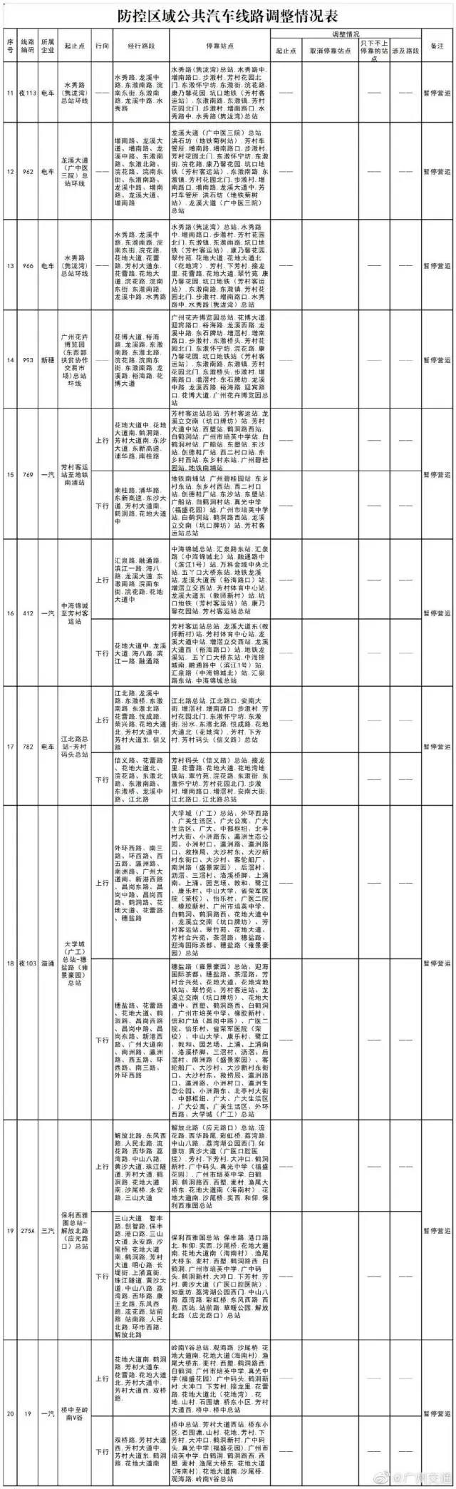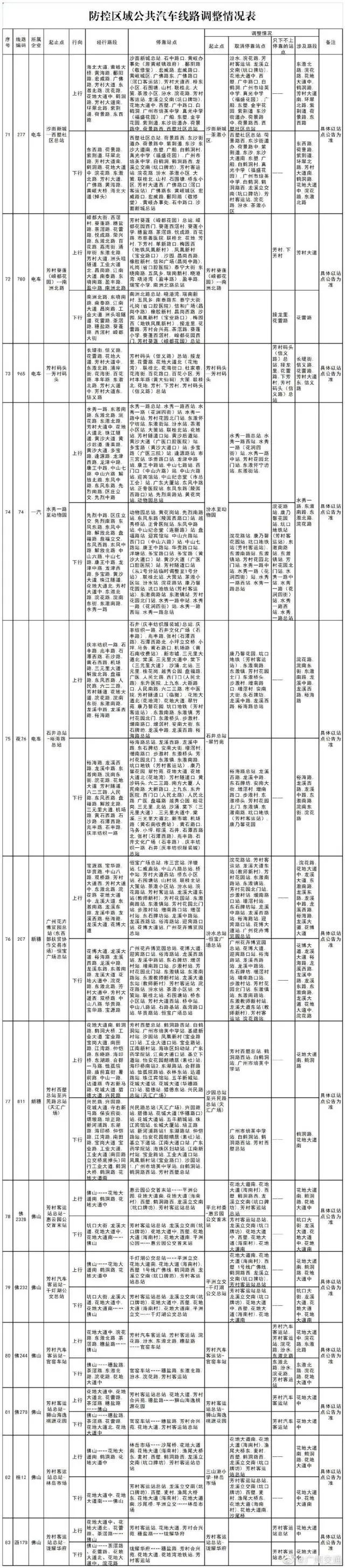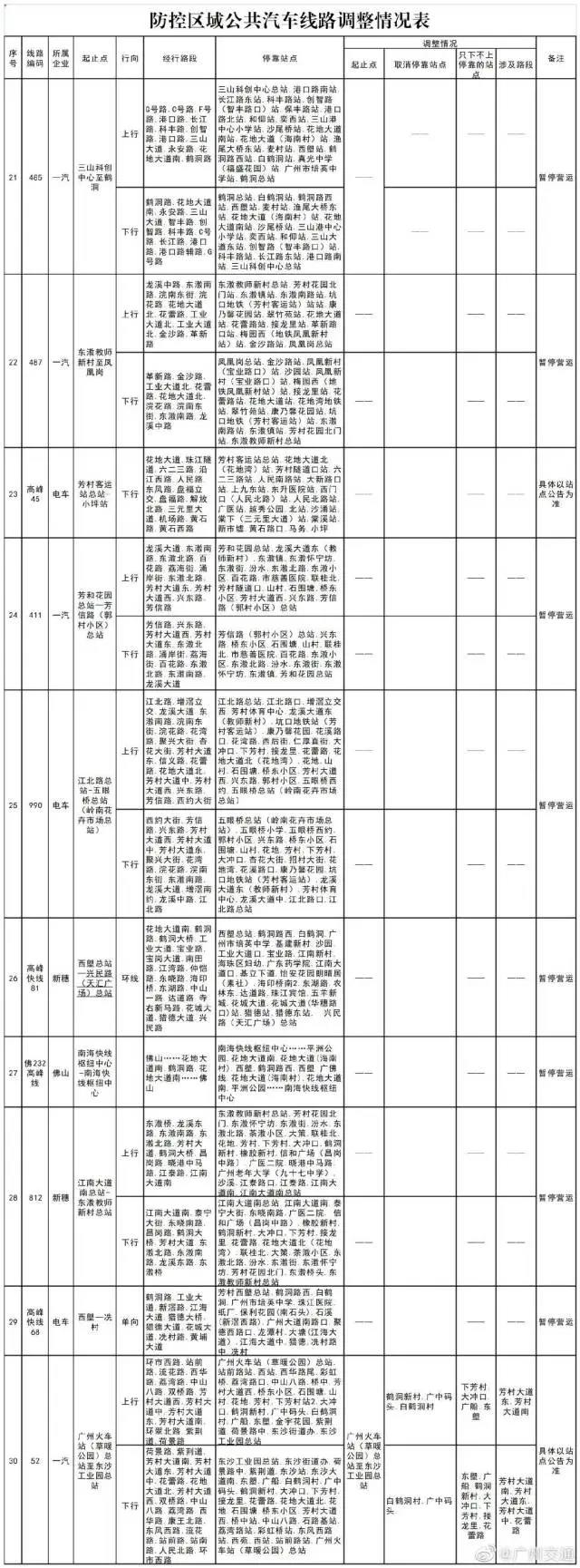 廣州防控再升級!荔灣封閉管理街道增至3條,芳村片區實施交通管控,7條公交暫停運營。