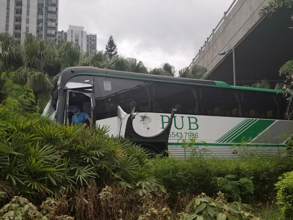 事發於今日中午1時許,一輛載有學童的旅遊巴行經沙田大涌橋路近富豪花園對開時,與一輛私家車相撞,旅遊巴失控衝進單車徑。旅遊巴司機受傷一度被困,約20名學童及私家車司機受傷,傷者全部清醒,多輛救護車趕至將傷者分批送院治理。其餘沒有受傷的學童,在消防和救護員協助下離開車廂,坐於路旁等候。警方正調查意外原因。(記者區天海)