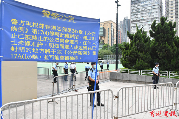 保安局發言人表示,根據《公安條例》第17(4)條,警務人員如有理由相信公眾集會相當可能會在違反《公安條例》第7條規定下於任何公眾地方進行,可將通往該公眾地方及其鄰近其他公眾地方的通道阻截和封閉一段其認為是必需之時間,以禁止公眾人士進入,藉以阻止該公眾集會進行。《公安條例》第17A條亦訂明,任何人未經准許,明知而進入或逗留在禁止其進入的公眾地方即屬犯罪,最高可處監禁12個月。