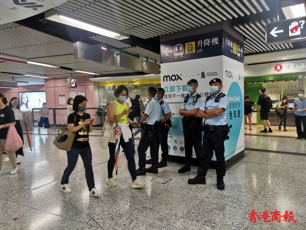 銅鑼灣地鐵站內有警員駐守,維多利亞公園出口也有警员在維持秩序。
