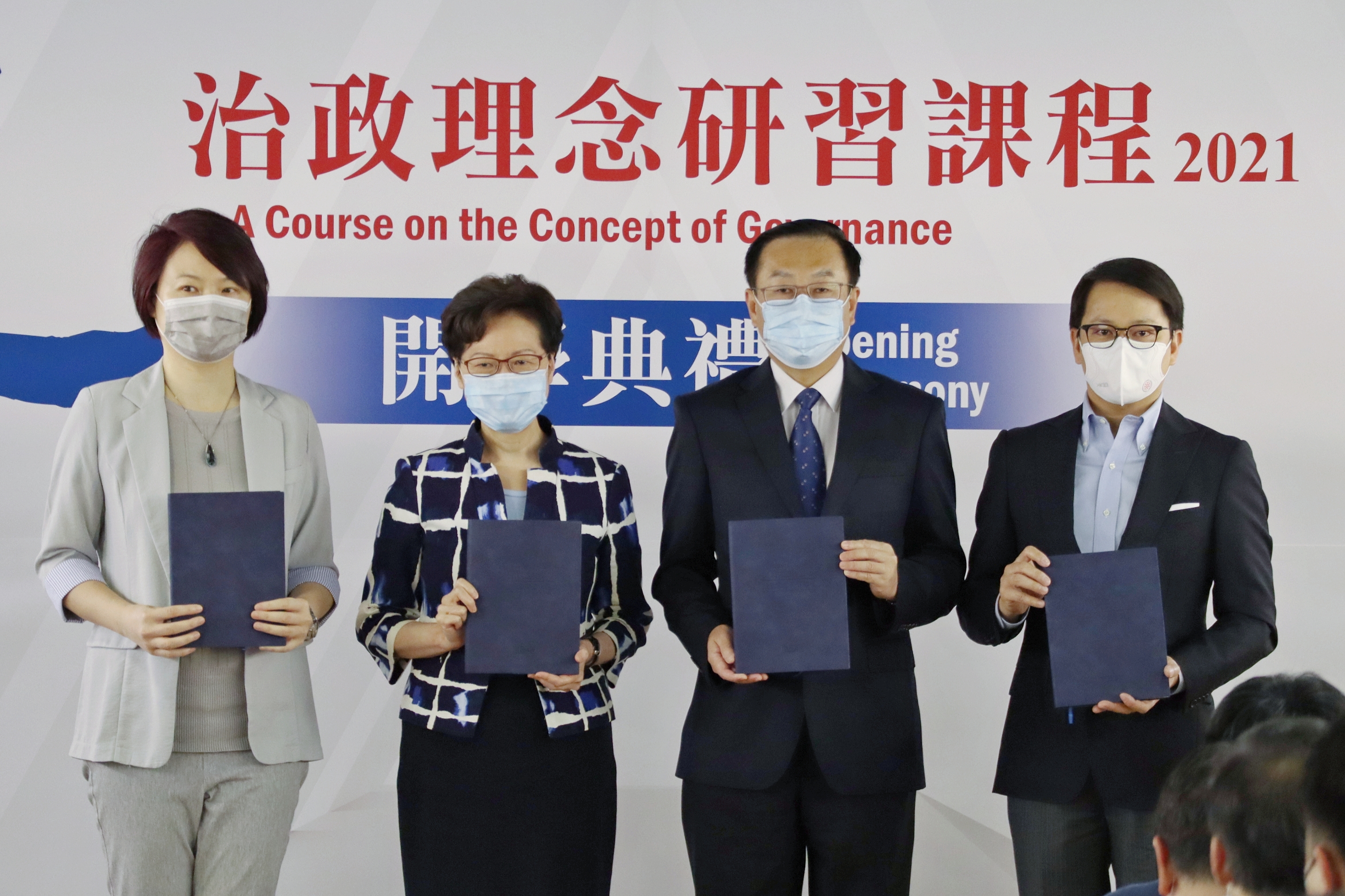 由民建聯主辦的「政道-治政理念研習課程」今日上午在饒宗頤文化館舉行開學典禮,由行政長官林鄭月娥及中聯辦副主任何靖擔任主禮嘉賓。
