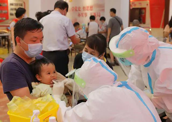 5月26日,廣州荔灣區報告感染者例數達到5例時,啟動了全區全員核酸大排查。