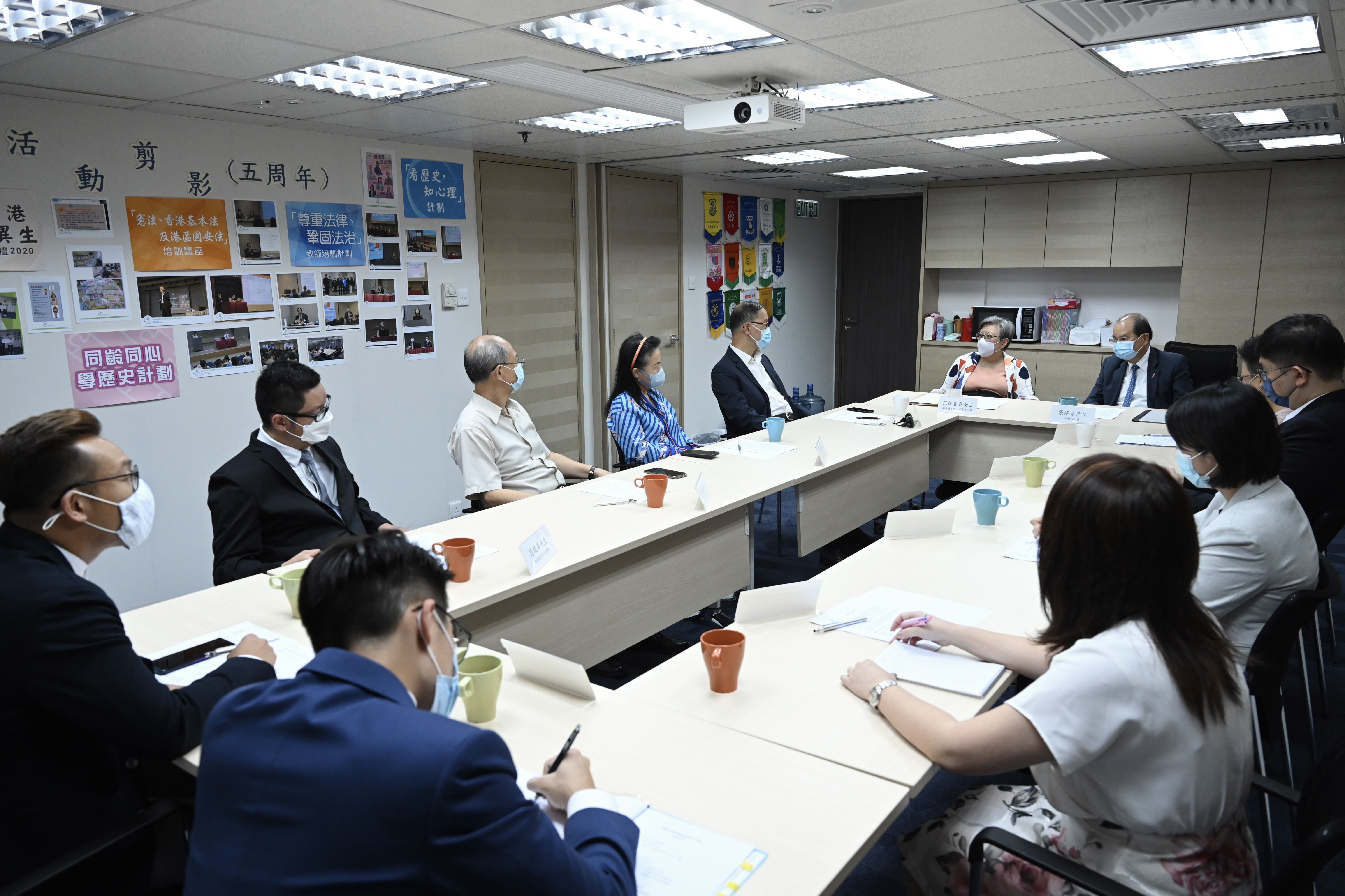 政務司司長張建宗今日(8日)到訪勵進教育中心,與中心理事會主席范徐麗泰及理事會成員會面,就加強青少年對國家認識和推廣宣傳國家《憲法》與《基本法》交換意見。