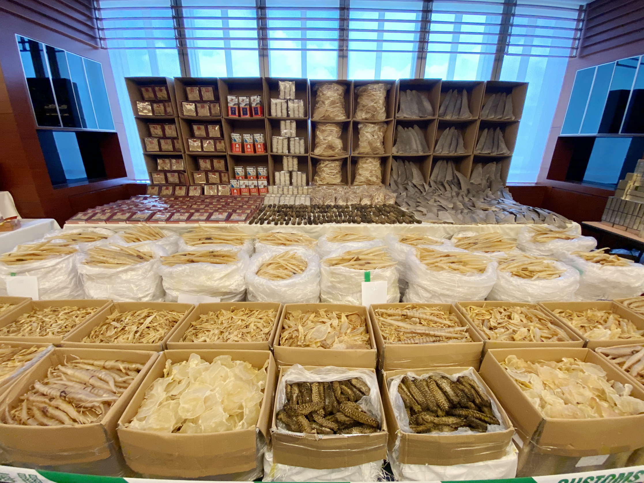 行動中,海關共檢獲一批市值約1.2億港元的懷疑走私物品,包括6.6萬件高價值的名牌手袋、波鞋及手表等貨品,2.3噸貴價食材包括燕窩、洋酒、雪茄,及186公斤受管制瀕危動植物,並拘捕4人,年齡介乎35至62歲,包括貨倉監工、包裝工人等。