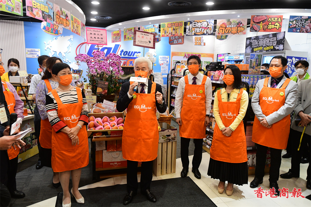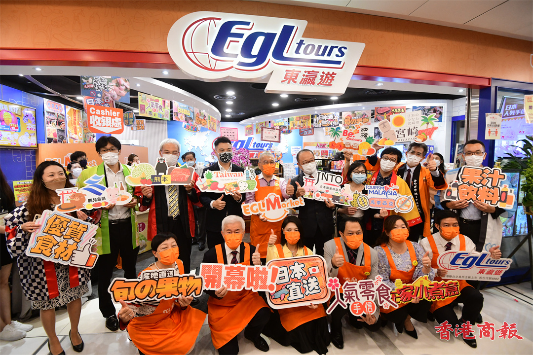 EGL Market首間實體店設於荃灣綠楊坊,今日剪綵儀式除禤國全、袁灝頤之外,日本國家旅遊局香港辦事處所長藥丸裕、馬來西亞旅遊促進局局長陳美玲亦有出席。禤國全致辭稱,期望將來可在更多港鐵站開設實體店,他還提到自己已經完成接種新冠疫苗,他鼓勵市民盡快接種,令香港盡快回復正軌;他透露東瀛遊亦會加入鼓勵接種獎勵計劃,稍後會公布更多細節。