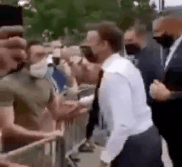 馬克龍當地時間8日前往德龍省視察時,遭到一名男子掌摑。事發後,警方逮捕2名涉事男子,包括塔雷爾。