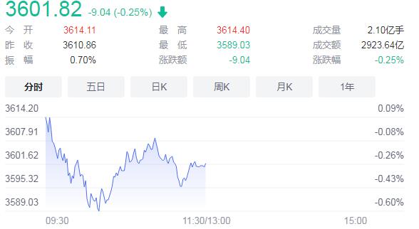 截止午間收盤,滬指跌0.25%,報3601.82點,深成指跌0.51%,報14816.96點,創業板指漲0.7%,報3308.39點。滬深兩市成交額6744億元;北向資金實際淨流入2.35億元。兩市63股漲停,15股跌停(含ST)。