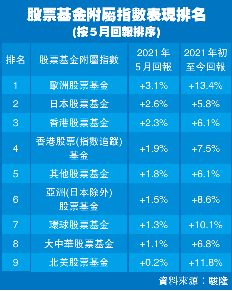 至於固定收益資產方面,駿隆5月份的固定收益基金表現普遍回升,旗下人民幣債券基金於5月份錄得1.3%回報率,累計年初至今錄得2.2%回報。駿隆預期,年內環球市場的風險資產整體表現,將受制於貨幣政策及經濟恢復所帶來的通脹預期。(記者 鄺偉軒)