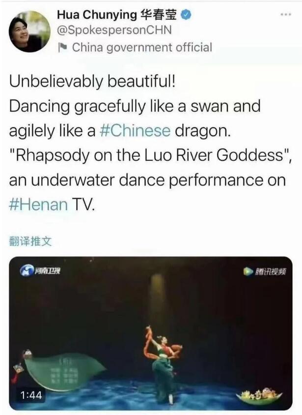 節目播出後,反響很熱烈,更是從國內火到了海外,連外交部發言人華春瑩也在海外社交平台推介點讚。在她的動態下,不少海外網友都留言表示,這是真正的藝術。