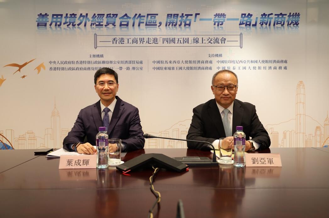 香港中聯辦經濟部副部長兼貿易處負責人劉亞軍介紹, 為推動香港深入參與共建「一带一路」,近年來,國家商務部與香港特區政府一直致力於推進「內地+香港+『一带一路』國家」三方合作,支持香港參與境外經貿合作區建設。林鄭月娥特首在2020年《施政報告》中指出,已初步選定上述「四國五園」以試點形式推動有興趣的香港企業與合作區對接。試點得到國家商務部的支持,包括可通過中國駐有關國家使領館的經濟商務參贊處協助香港企業與合作區對接磋商。此次線上交流會即是落實香港特區政府和國家商務部決策的一項工作舉措,也是回應和服務香港企業了解境外合作區期望和需求的實際行動。疫情好轉之後,主辦方還將視情組織有意向的香港企業赴相關園區實地考察調研,推進業務合作。