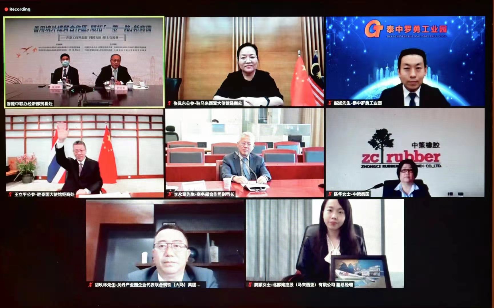 6月15日,「四國五園」首場在線交流會主要聚焦馬來西亞、泰國兩國的重點園區,近400名香港和內地工商界人士參加了線上交流。會上,國家商務部對外投資和經濟合作司副司長李永軍介紹了中國境外經貿合作區建設總體情況。中國駐馬來西亞大使館經濟商務處公使銜參贊張佩東、駐泰國大使館經濟商務處公使銜參贊王立平分別介紹了馬、泰兩國的投資營商環境及主要產業發展狀況。馬中關丹工業園、泰中羅勇工業園中方負責人分別介紹了園區建設、運營及園區內產業發展招商的有關情況。聯合鋼鐵、中策橡膠等已在園區內投資的企業代表分享了投資經驗和心得體會。最後,線上參會企業踴躍提問,與發言嘉賓互動交流。