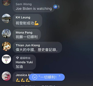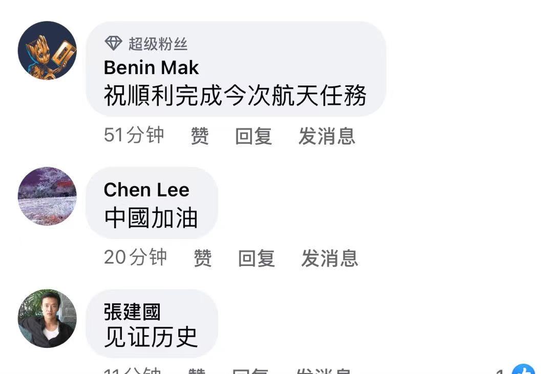 在本報直播平台,很多香港市民紛紛留言表示關注,並為中國航天加油!