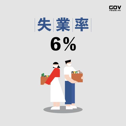 政府統計處公布,3月至5月經季節性調整的失業率為6%,較2月至4月下跌0.4個百分點;就業不足率下跌0.5個百分點至2.8%。