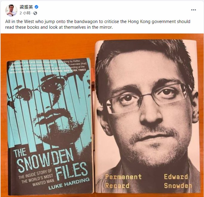 梁振英連發多帖,強調任何新聞工作者及傳媒機構都沒有危害國家安全的特權。圖:梁振英fb