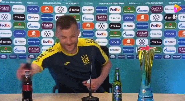 烏克蘭前鋒亞爾莫連科则拿此事開起了玩笑,他將發布會桌子上的兩瓶可口可樂和一瓶喜力啤酒都拿到了自己面前的位置,並表示:「我要把可口可樂和喜力一起放在桌子上,你們(拍廣告)一定要和我聯繫呀,夥計們。」