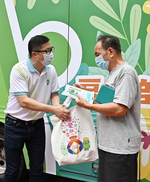 警務處處長鄧炳強向長者派發福袋。