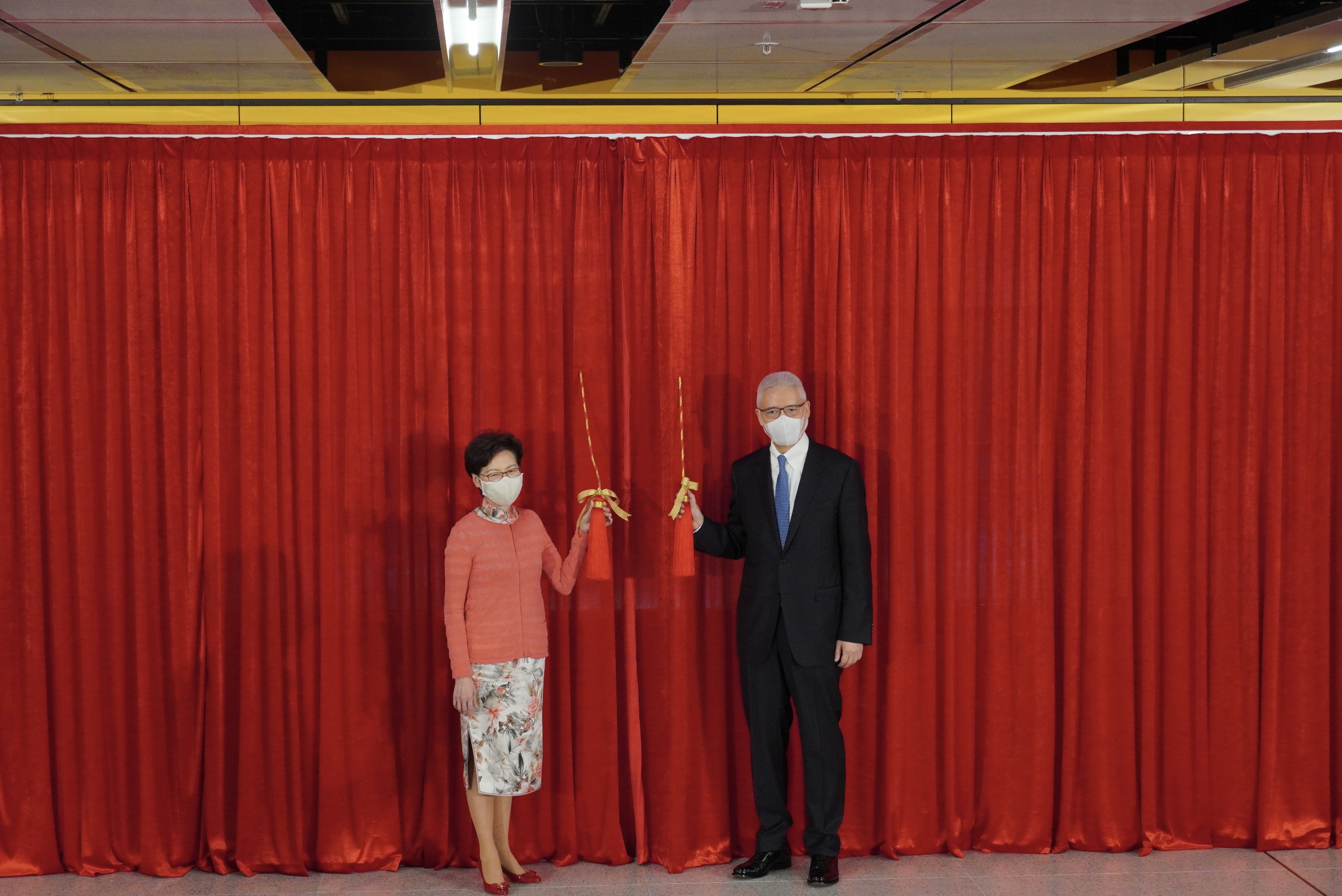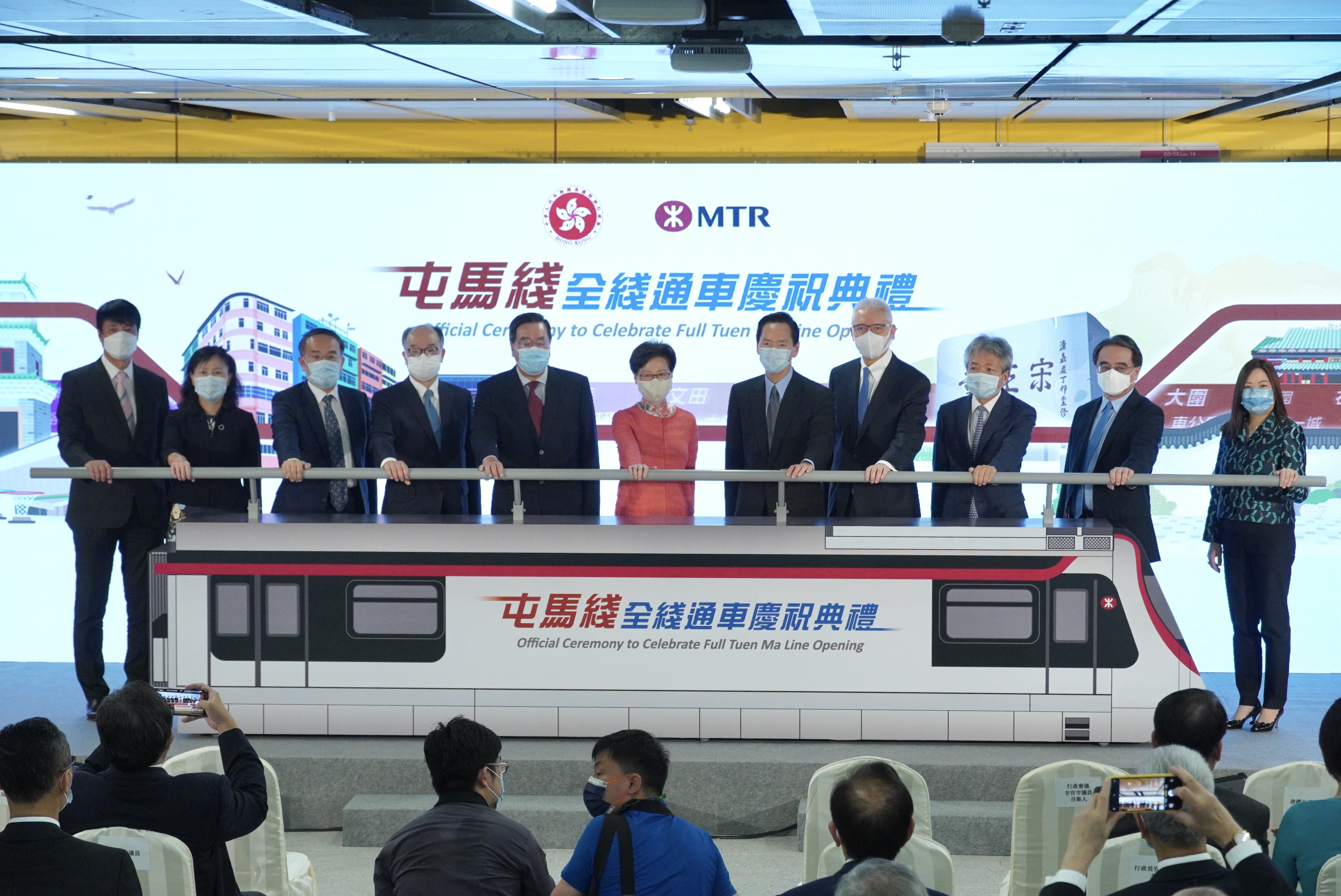 行政長官林鄭月娥與一眾政府官員及港鐵公司代表,主持屯馬線原線通車儀式。記者馮俊文攝