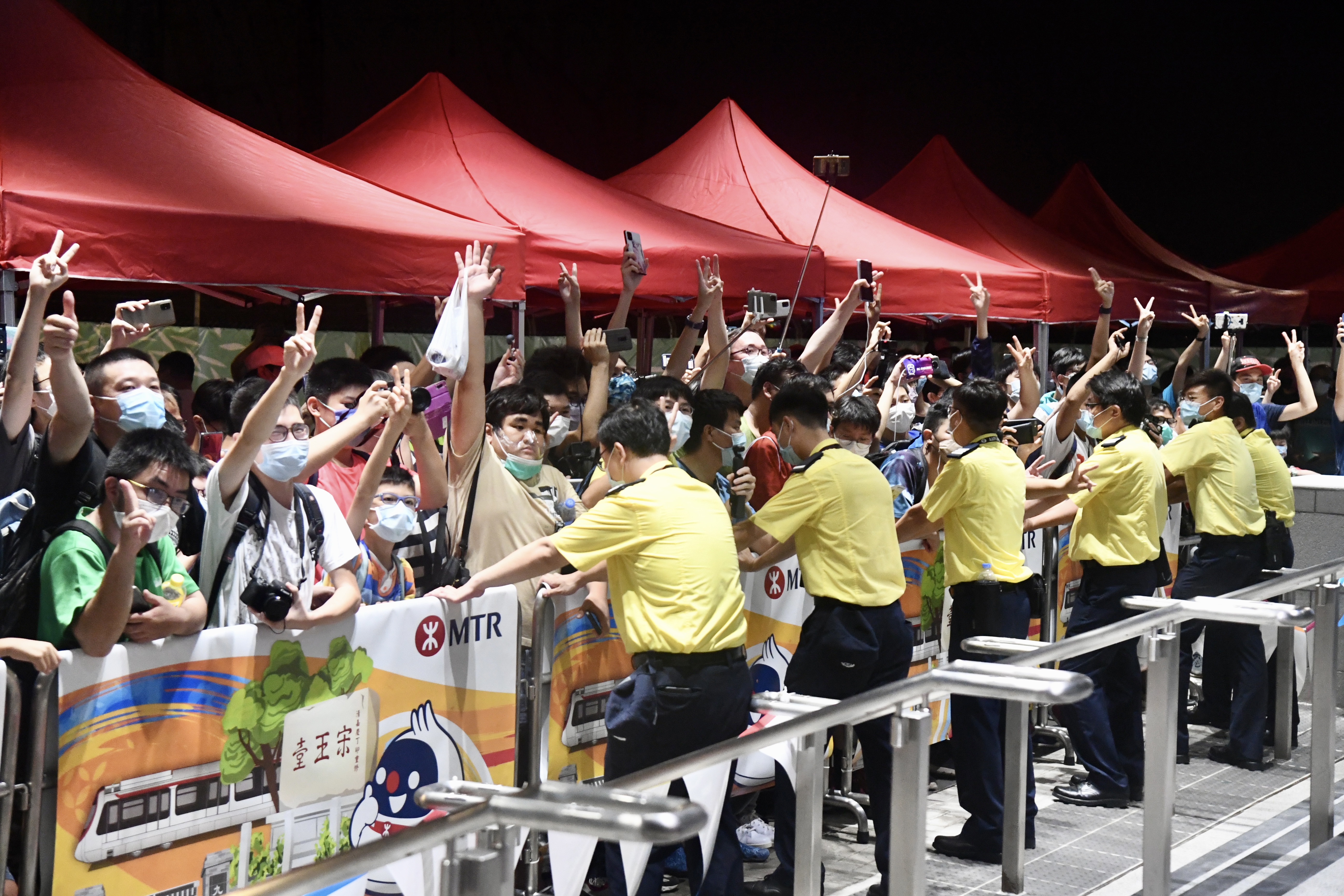27日早,港鐵屯馬線於早上5時50分正式全線通車,逾百鐵路迷於宋皇臺站等候乘坐頭班車。中新社記者李志華攝