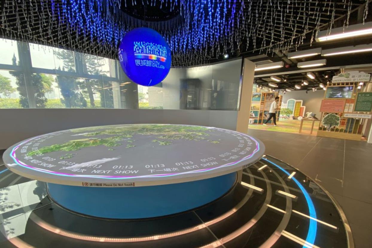 展城館的新展品——「規劃視窗」,透過一個像眼球的圓形屏幕,配合香港地貌模型上的互動投影,加上聲光效果,帶訪客進入一段探索香港規劃與基建發展的旅程。
