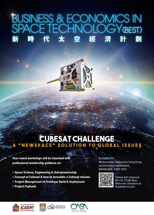 「新時代太空經濟計劃」更有全年工作坊,學生可學習涵蓋太空科學與太空數據、「立方衛星」設計概念和運作及原型構建及項目管理等內容;學員活動期間可同時培養批判性思維、學習團隊協作、發揮領導能力,並能擴闊視野、自我增值、充分發揮潛能;至於經獲挑選BEST「立方衞星」原型還有機會被發射到太空中作真正應用。