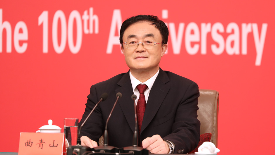 下午15時整,中共中央黨史和文獻研究院院長曲青山、第三研究部主任姜淑萍、對外合作交流局局長楊明偉、第七研究部副主任劉榮剛等在慶祝中國共產黨成立100周年活動新聞中心負責人、中共中央宣傳部對外新聞局副局長邢慧娜的引導下進入會場,圍繞新時代的黨史和文獻工作進行介紹並回答記者提問。