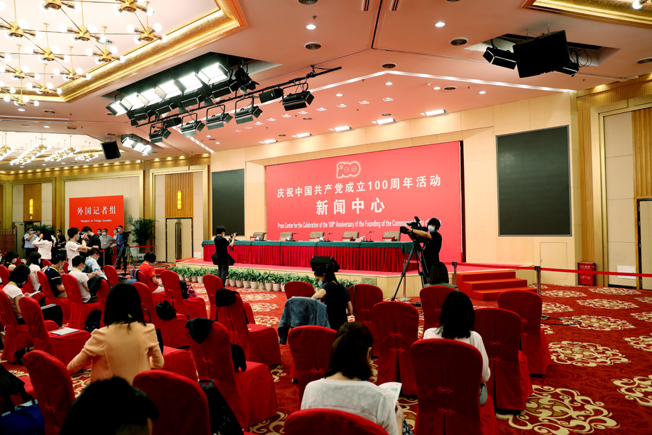 6月27日,慶祝中國共產黨成立100周年活動新聞中心在北京梅地亞中心舉辦了第一場新聞發布會。作為這場百年盛事的首場新聞發布會,包括本報記者在內的近百位中外記者受邀來到現場進行報道。
