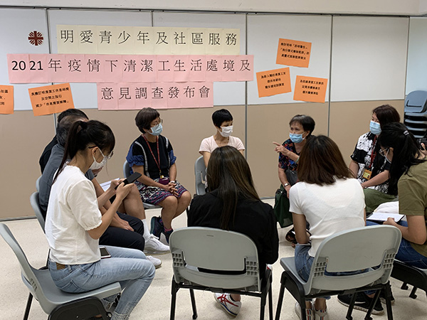 明愛青少年及社區服務指在1至5月進行「2021年疫情下清潔工生活處境及意見調查」,訪問了5區合共607位外判清潔工人,並發現3項調查重點。