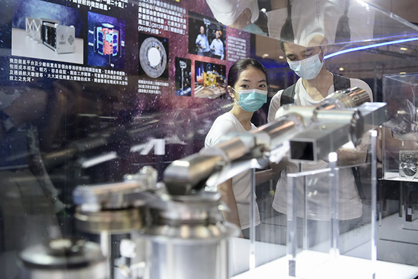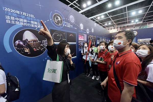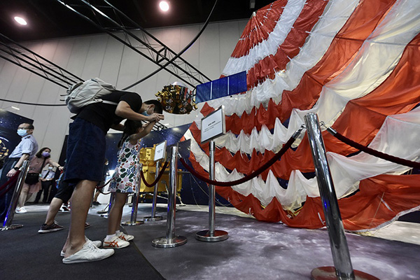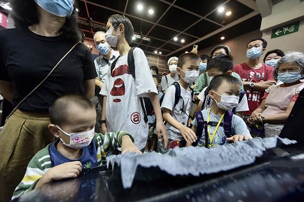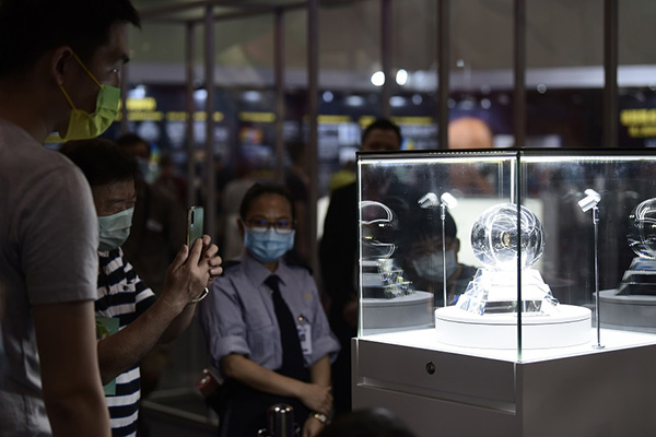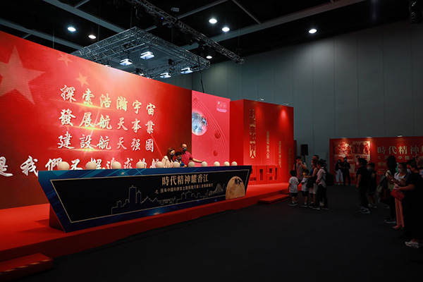 由香港中聯辦、香港特區政府、中國科協、紫荊文化集團主辦的「時代精神耀香江」之百年中國科學家主題展於香港會展中心舉行,吸引大批香港市民參與,近距離觀看月壤。(圖:中新社、中通社)