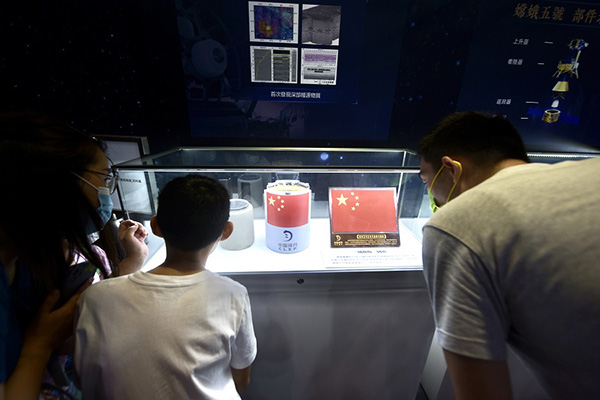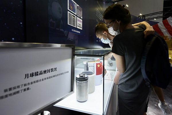 這次主題展還展示嫦娥五號着陸器、返回器、上升器、軌道器等的模型及月壤存儲器、表取採樣執行裝置等周邊陳列的多件展品,讓市民了解航天科技成就,感悟科學家精神。