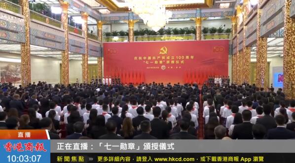 經中共中央批准,「七一勳章」頒授儀式於今天上午10時在人民大會堂隆重舉行。中共中央總書記、國家主席、中央軍委主席習近平首次頒授「七一勳章」並發表重要講話。