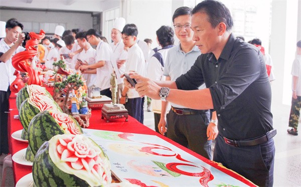 富有創意的食雕作品吸引到學院領導和嘉賓的關注