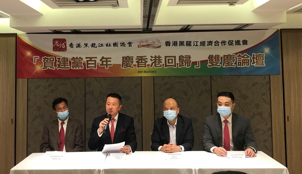 香港黑龍江社團總會、香港黑龍江經濟合作促進會、港龍青年會(「港龍會」)6月28日主辦「賀建黨百年 慶香港回歸」雙慶論壇。論壇同時線上線下進行,內地香港同時收看。論壇採用了全國政協民族和宗教委員會主任、原社會科學院院長王偉光講話。香港中聯辦社聯部黎寶忠副部長則來到現場,同與會者一起分享與交流,慶祝歡慶建黨百年、香港回歸紀念的大喜日子。