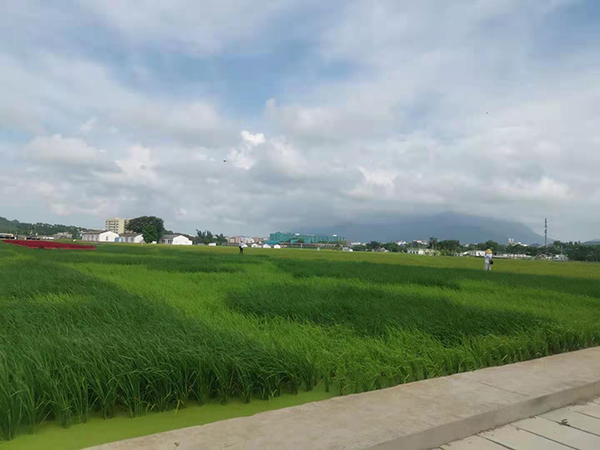 記者在現場看到,稻田畫旁,水稻的清香在四周瀰漫,放眼望去,連片綠油油的水稻往遠處延伸,鵬城河從稻田穿過,流經大鵬新區最熱門的旅遊景區之一——大鵬所城旅遊景區,最後經較場尾匯入大亞灣,一派欣欣向榮景象。