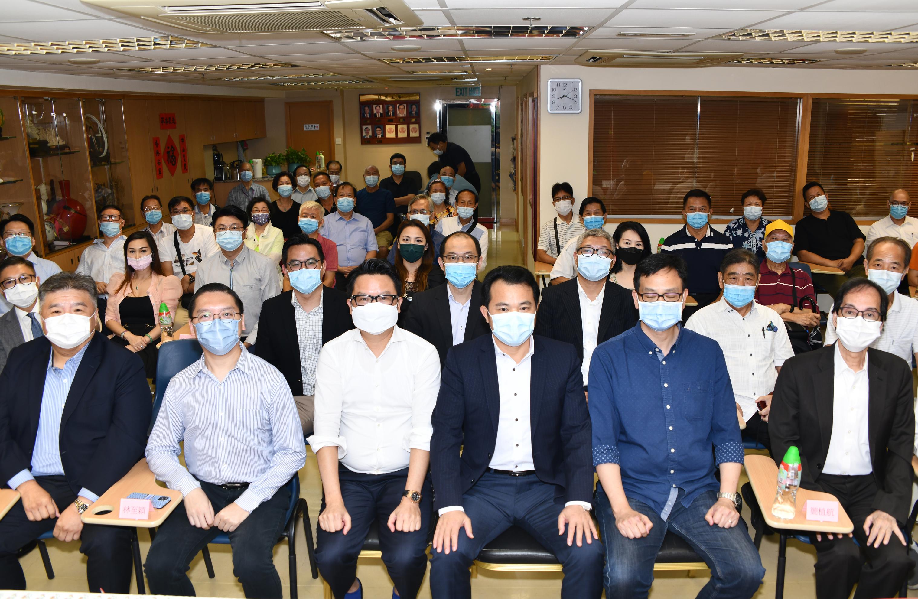 祝小東(左九)、蒙志堅(左十一)、中山社團總會首席會長簡植航(左八)、楊凱山(左十)等首長出席分享會。