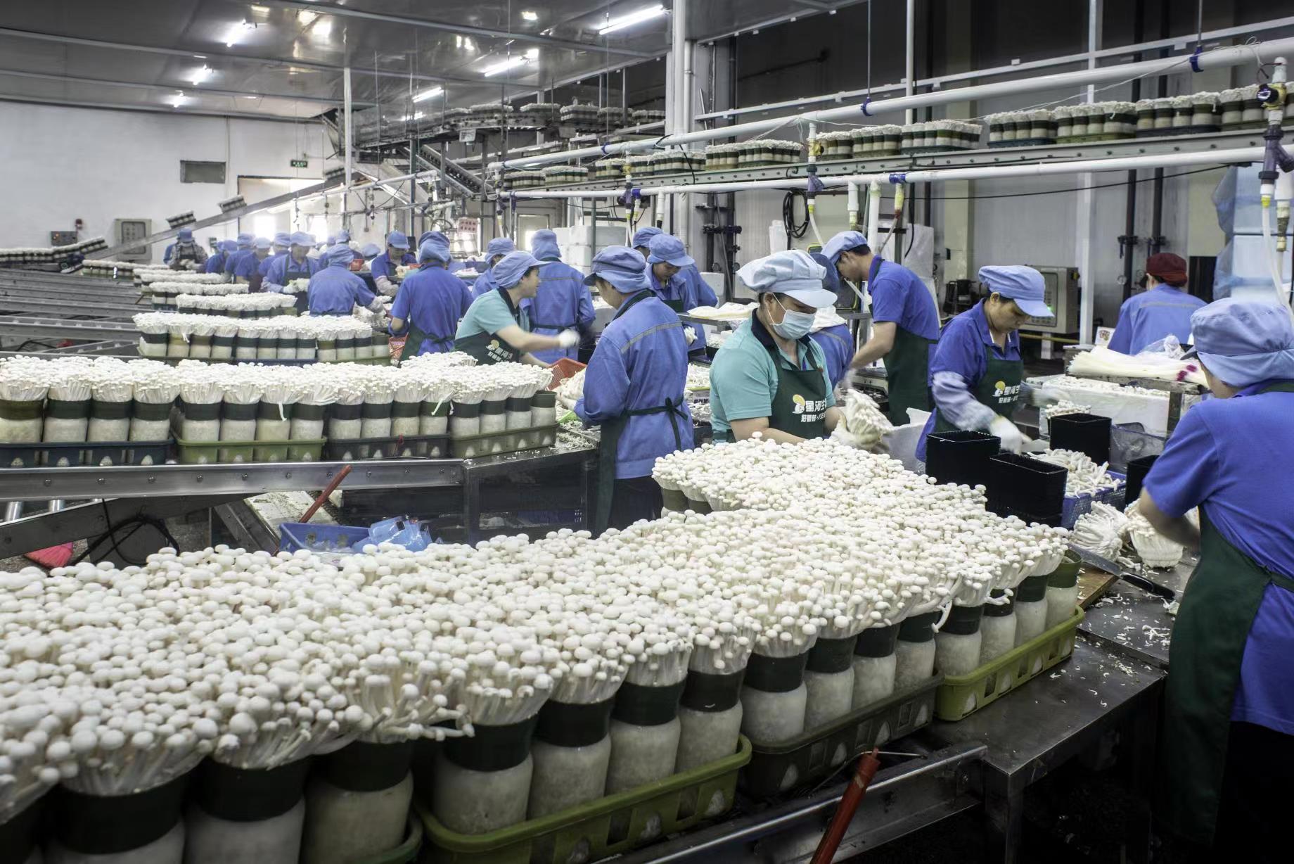 食用菌省級現代農業產業園是省內第一個定位為食用菌類型的農業產業園。近年來,曲江區堅持用產業化思維發展現代農業,依託食用菌省級現代農業產業園,引進食用菌行業農業企業11家,其中省級農業龍頭企業4家、市級農業龍頭企業7家,囊括了菌種研發、菌棒生產、種植、檢測、精深加工、冷鏈物流、品牌銷售等功能板塊。目前,全區食用菌種植面積3萬畝,年產食用菌3萬噸以上,年產值達13.5億元,實現了「小菌菇、大產業、專業園區」式發展。