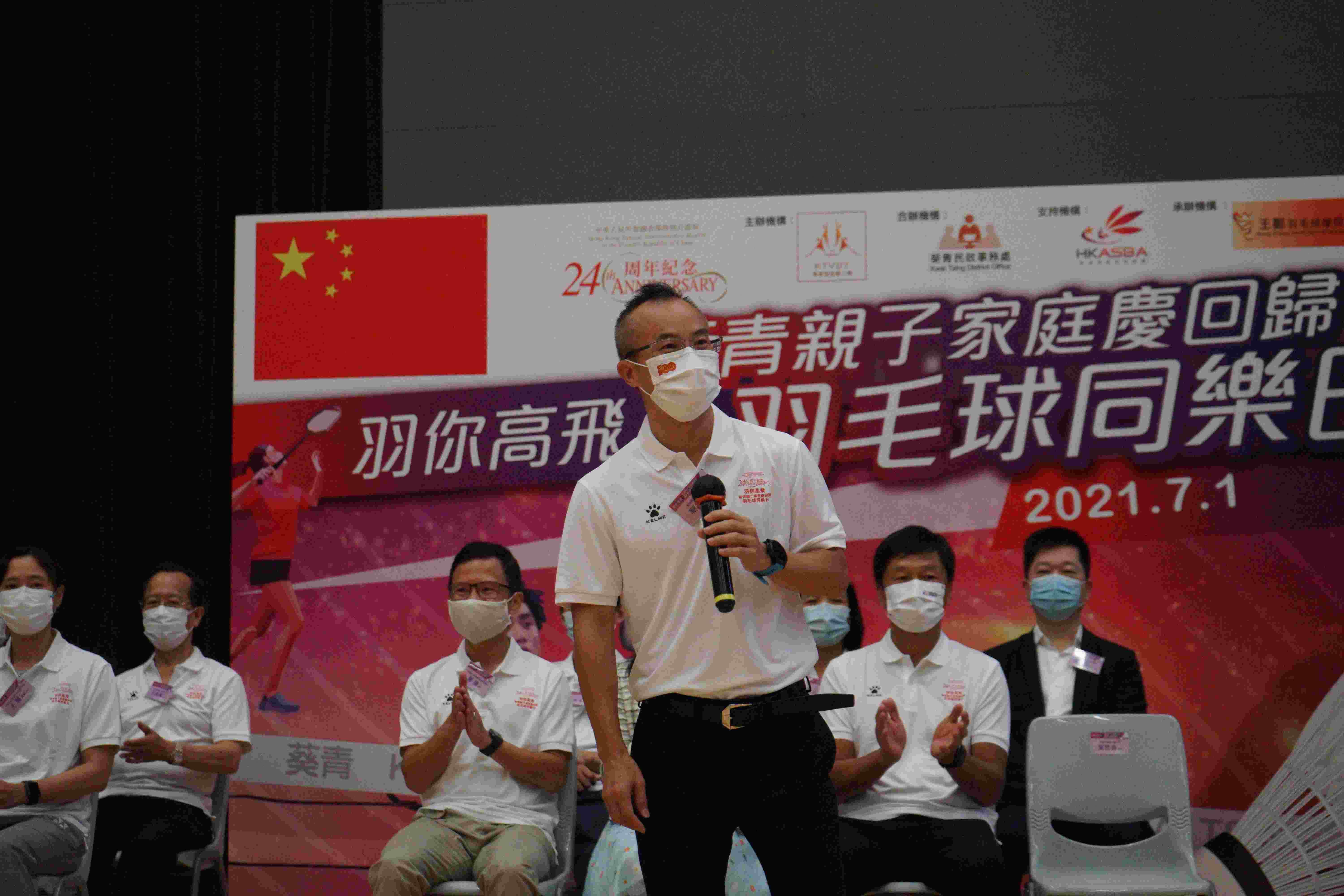 葉長春致辭時表示,今天是建黨100周年和香港回歸24周年的大日子,隨着疫情慢慢緩和,希望透過活動,讓社區家庭在遵守防疫規定的前提多多運動,增進親子關係,達至家庭和諧、社會和諧。他指出,羽毛球能夠提升小朋友的專注力,鍛煉身體,亦可加強團隊合作能力。現場還準備了豐富多樣的遊戲玩法,吸引小朋友的興趣。