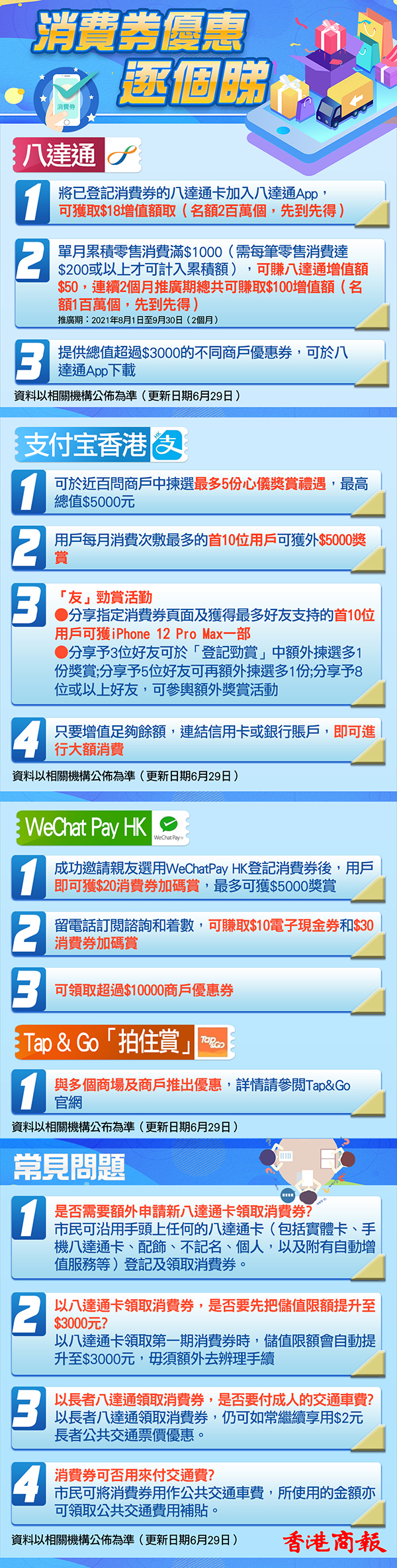 他指,特區政府首次推行消費券計劃,涉及700多萬市民、10多萬商戶,大家一起嘗試新安排,過程中不同環節也許需要更多解說,但見到不少商戶或店舖把握這次機遇採用電子支付,4間儲備支付工具營運商推出疊加優惠,以至商店、商場或食肆都有不同形式的折扣或促銷,讓市民有更大的興趣使用電子消費券,這些都是他推動消費券計劃希望達致「齊齊消費、帶旺經濟」「電子支付、優惠方便」的目的。