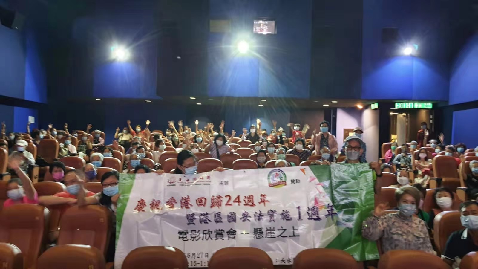 上月底舉辦「慶祝香港回歸祖國24周年暨港區國安法實施1周年電影欣賞會」,與天水圍居民一同觀看電影《懸崖之上》;下午舉辦了「慶祝香港回歸祖國24周年暨港區國安法實施1周年聯歡會」,出席的主禮嘉賓有立法會議員梁志祥、周浩鼎、中聯辦新界工作部副部長李功勛、香港婦聯主席葉順興。主辦單位天水圍婦聯主席鄺月心與主禮嘉賓致辭,他們分別就「一國兩制」在香港的實踐,特別是立了香港國安法後的形勢作了分析,也發表了宣揚愛黨、愛國、愛港的精神,更寄語青年一代要把握好現時的好機會,勇於擔當,與國家同行,確保「一國兩制」行穩致遠。主禮嘉賓勉勵大家做好防疫措施,鼓勵身邊親友盡快注射疫苗,期望香港早日回復正常,大家都能夠身體健康!聯歡會結束後,一眾嘉賓登上巴士參與「慶祝香港回歸祖國24周年暨港區國安法實施1周年紀念」遊覽元朗活動。