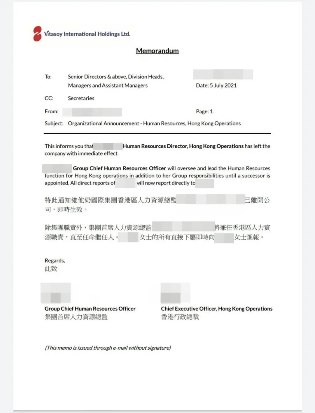 另外,本地媒體接獲消息人士提供一張疑于維他奶內部流傳的通告,內容指維他奶國際集團香港區人力資源總監已離開公司,並由首席人力資源總監兼任其香港區職責。企查查App顯示,2021年至今,維他奶有限公司相關的法律訴訟,多涉及勞動合同糾紛。